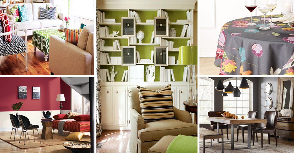 Try adding a bright element to a traditional-looking room, like a brightly colored tablecloth for instance, and see it adding tons of personality to the space. You can then begin to add little elements in the same color around it to keep the décor elements tied together.