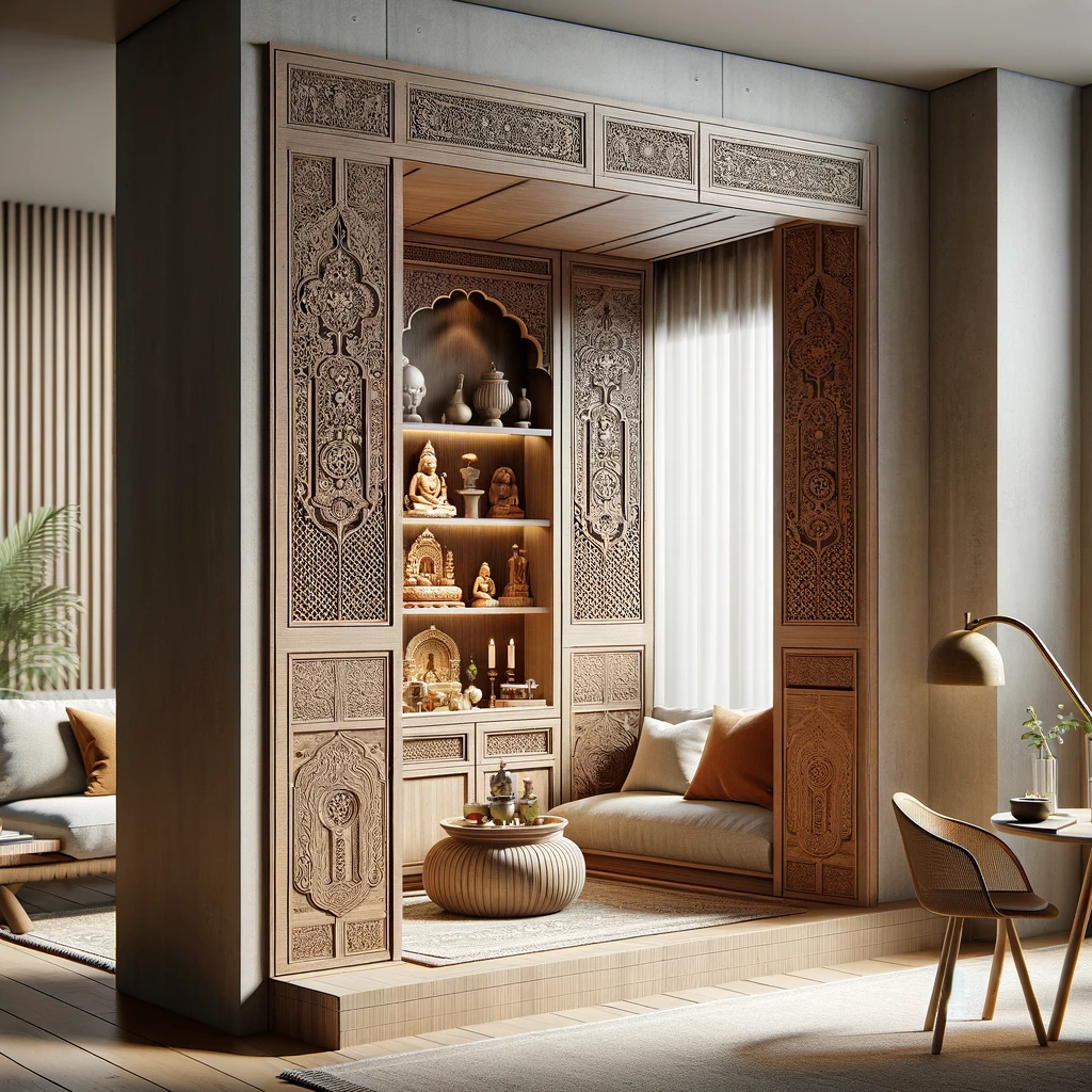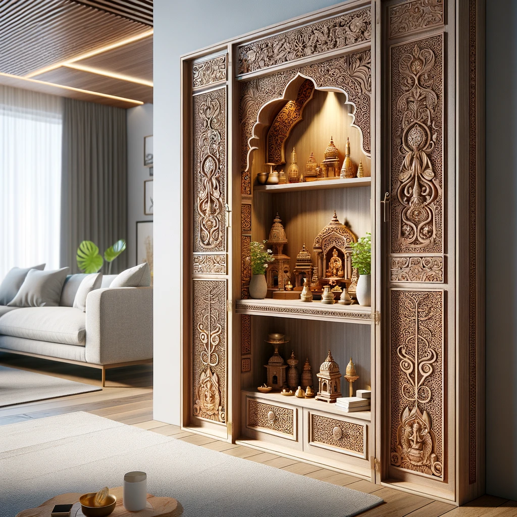 The concept of multifunctional furniture is a game-changer for modern, compact living spaces. A piece that serves as both a TV unit and a prayer space is an ingenious solution, allowing for a seamless integration of spiritual practices into everyday life. This approach exemplifies the modern ethos of efficiency and functionality, ensuring that even in the smallest of spaces, there is room for spirituality.